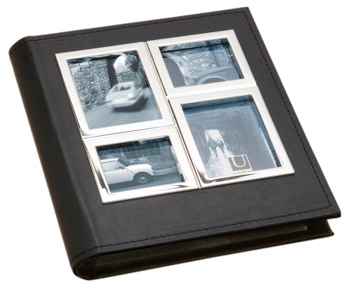 The Umbra Horizon 2-up Album holds (104) 4" x 6" photos. The album, which is made of black imitation leather with chrome detail on the cover, is 9" x 7.5" in size. The cover holds two 3" x 3.5" photos and two 3" x 2.5" photos. The inside sleeves are made from polypropylene and will not fade or color photos. The photos arrange on top of each other in a horizontal fashion. The cover is made from MDF and will not bend or warp over time. The binding is top of the line for years of use! The Umbra Horizon Album - great design for your home.